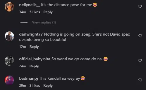 “Nothing is going on abeg. She’s not David spec despite being so beautiful,” a user wrote.
