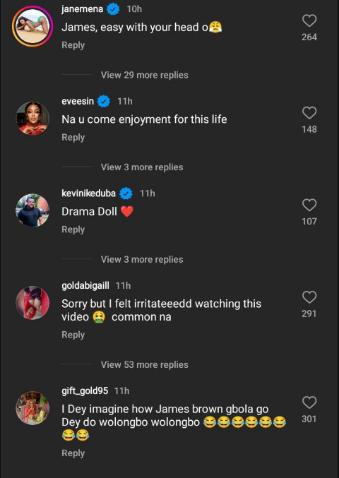 The clip as expected generated a lot of reactions from fellow celebrities and fans who expressed their thoughts as regards Destiny Etiko and James Brown’s antics in recent times. Check out some reactions beneath: