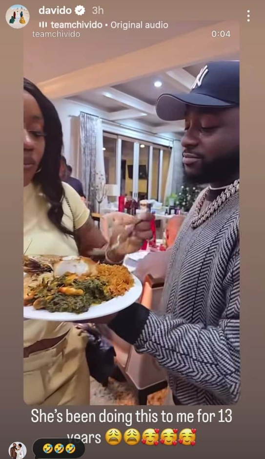 - Davido has humorously called out his wife, Chioma, over her habit of taking food from his plate, joking that she has been doing it for 13 years.