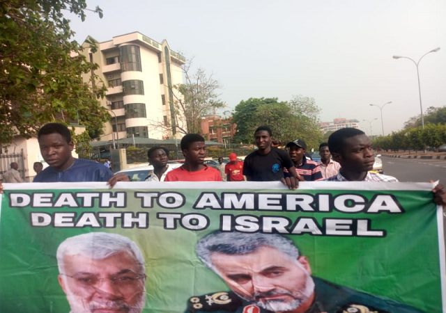 Members of the proscribed Islamic Movement of Nigeria aka Shiites, today took to the streets of Abuja to protest the recent killing of Iranian military commander, General Qasem Soleimani, by a United States airstrike last week January 3rd.