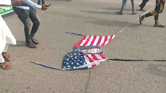 Chanting hate songs and slogans like “Death to America.” the protesting Shiites also burnt a US flag.