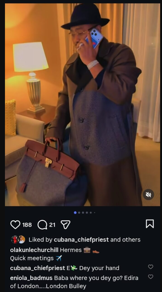 - Nigerian businessman Olakunle Churchill showcased new Hermes accessories on his Instagram page, attracting attention for his high-end fashion choices, which place him in the same league as luxury-loving celebrities like Davido and Cubana Chief Priest.