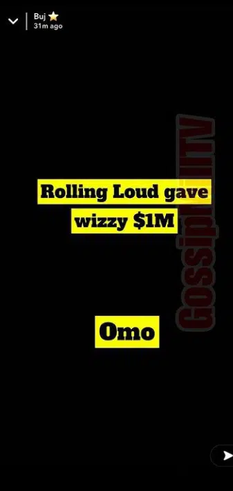 Buj who disclosed the news wrote, “Rolling Loud gave Wizzy $1M Omo”.