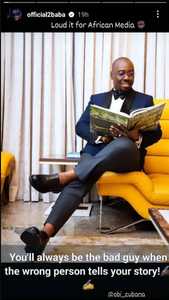 2Face Idibia recently posted a photo of Obi Cubana to his Instagram account, stating that when the wrong person recounts the tale, someone becomes the bad guy.