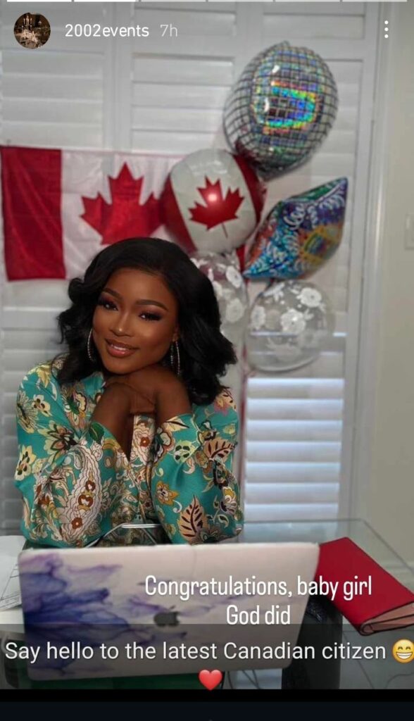 The 21-years-old announced the good news on her Instagram story with a photo of her beside Canada flag and balloons.