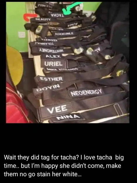 The picture was posted with the caption, “Wait, so they did tag for tacha? I love tacha big time.. but I’m happy she didn’t come, make them no go stain her white.”