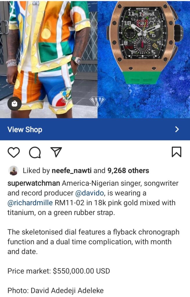 Fans have expressed their shock over Davido’s watch which is estimated to cost a whooping N229 million.