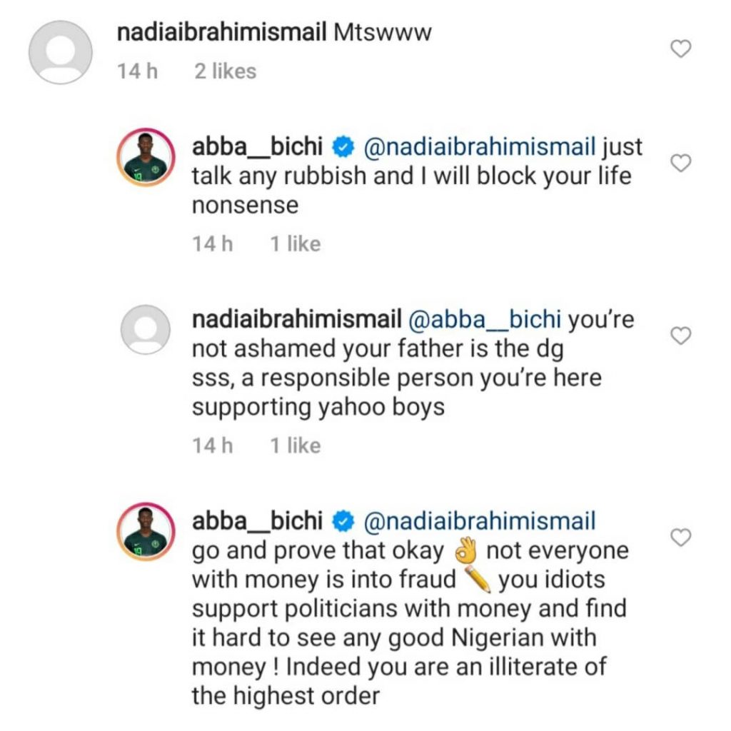 Some of his followers however berated him for the post, and one even went as far as accusing Abba of supporting ‘Yahoo boys.” Abba was however on standby to fire back at his critics. See their exchange below