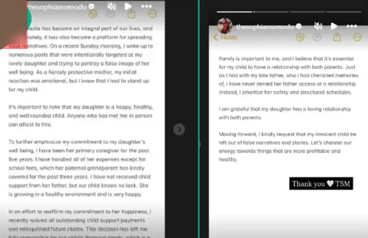 “Moving forward, I respectfully ask that my innocent daughter not be included in false stories or misleading narratives,” Sophia concluded.