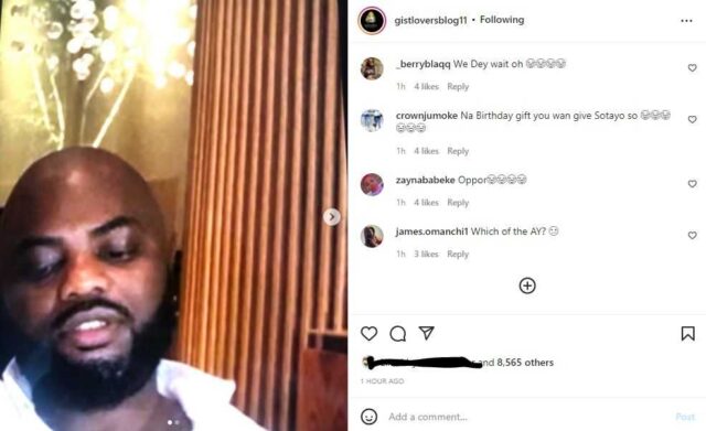 “Fight go soon start ooo, 3men wan come birthday oo after bankrolling, Ay London don cry tire, baba don put him house in sale because of Sotayo,senator don fly enter Lagos against birthday ,our aboki husband in Abuja don collect him car back as he Dey hear kuru kere, wahala no too much like this???details later , Awon eleyi Awon eleyi, won bad gan😂😂😂”