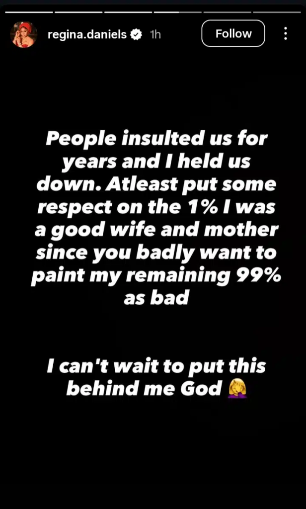 Nollywood actress Regina Daniels has once again spoken out, accusing her husband, Senator Ned Nwoko, of allegedly trying to damage her reputation both publicly and privately.