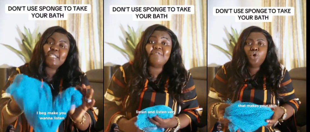 A lady has urged Nigerians to stop using sponges during their baths, emphasizing that bathing should be done solely with soap and water.