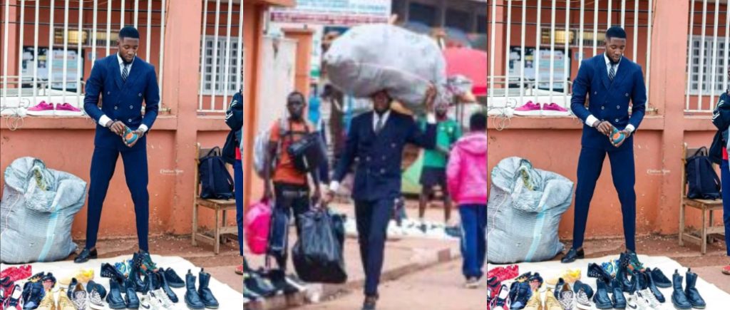 Photos of a tall, stylishly dressed man selling shoes by the roadside have gone viral on social media, drawing attention and admiration, especially from female users curious about his location.