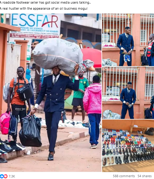 - A tall, stylishly dressed man selling shoes by the roadside has gone viral on social media.