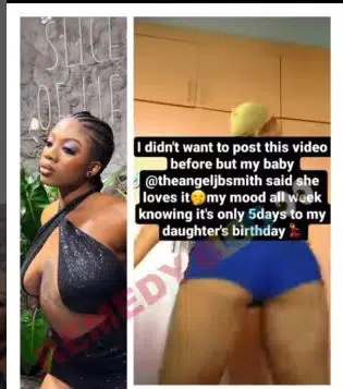 Angel’s mother took to her Instagram page to share a video of herself twerking with a short outfit that exposes some part of this ‘Bum Bum’, which has caused a stir online.