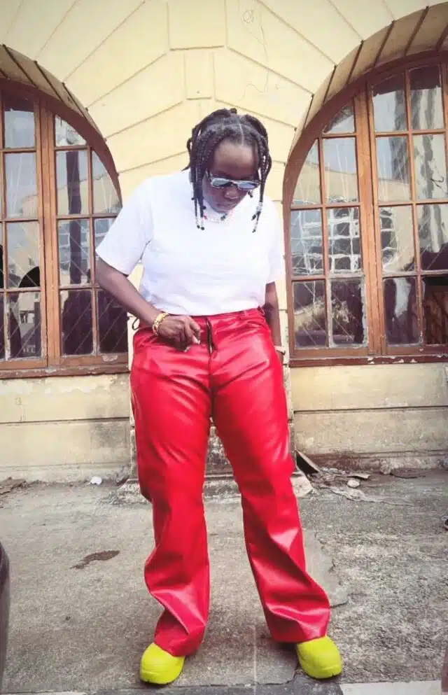 In the new photo, the “hustle” crooner is seen rocking white tees, paired with red leather pants and neon boots.