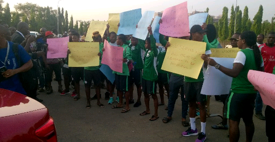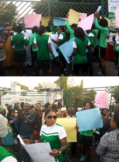 The Super Falcons of Nigeria, this morning have stormed the National Assembly, protesting the non-payment of their allowances by the Nigerian Football Federation.