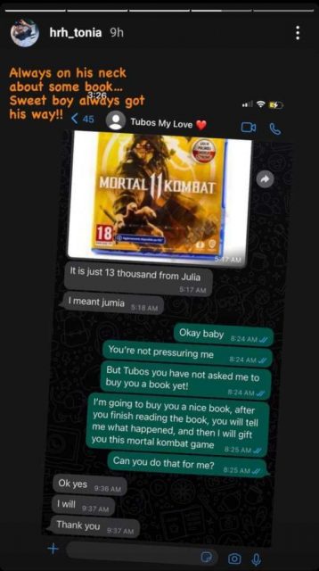 In the WhatsApp chat, Sylvester shared a screenshot of a mortal combat game, and told his sister that it costs only N13, 000 from Jumia.
