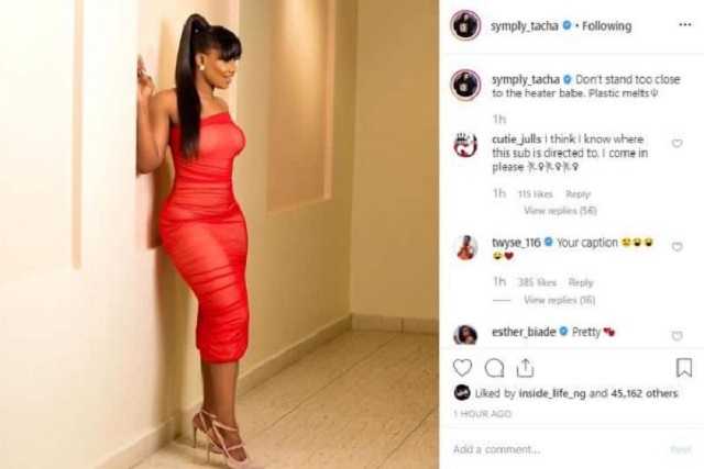 In a post on her Instagram handle, Tacha wrote “Don’t stand too close to the heater babe, plastic melts”