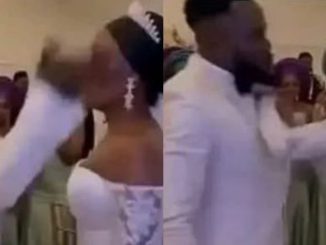 A Nigerian couple’s wedding reception descended into chaos after a disagreement over a male guest escalated into a public fight. The drama began when a young man from the neighborhood arrived during the dance, prompting
