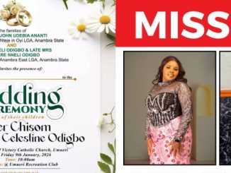 A wedding celebration in Anambra State turned into a frantic search after the bride, Jennifer Chisom Ananti, disappeared on her wedding day, Friday, January 9, 2026. Jennifer was scheduled to wed Celestine Odigbo, but she