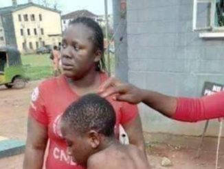 Middle Aged Woman Bathes Houseboy with Hot Water for Stealing A woman bathe her houseboy with hot water for stealing, and she has now been arrested by the Ondo State Command of the NSCDC.