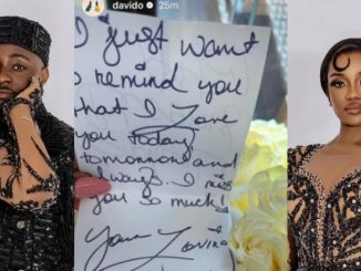 Fans have been gushing over Davido’s touching love note to his wife, Chioma, as he prepares to continue his tour across Nigeria. The award-winning singer resumed the Nigerian leg of his Timeless 5ive album tour,