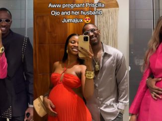 Speculations about Priscilla Ojo, wife of Tanzanian singer Juma Jux, possibly being pregnant have resurfaced online after her recent appearance at the Headies Awards. Dressed in a fitted red bodycon gown, Priscilla’s look caught the