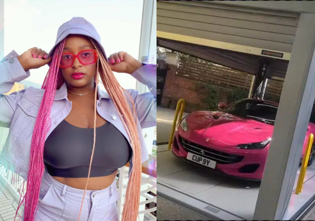 DJ Cuppy, a well-known Nigerian disc jockey, waves goodbye to her pink Ferrari Portofino worth approximately N90 million, just days after being chastised by her father. It should be noted that the billionaire’s daughter recently