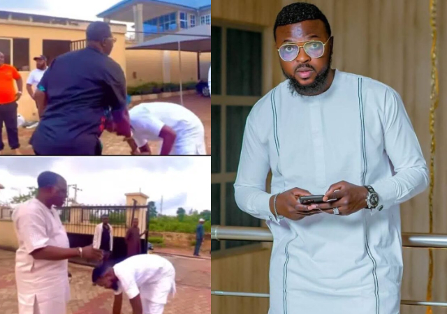Nollywood actor Kolawole Ajeyemi has stirred the internet with his humble act as he prostrates to acknowledge veteran Nollywood actors on a movie set. The thespian shared a video of himself prostrating to greet Yoruba