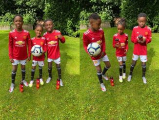 Manchester United striker, Odion Ighalo‘s three children are proudly showing their support for their father. The three siblings, Samuel, Bernice, and Daniel Ighalo were pictured posing together in Manchester United’s new jersey for the 2020-21