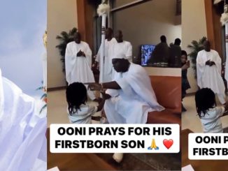 Oba Enitan Adeyeye, the Ooni of Ife, and his first son, Prince Tadenikawo, recently trended online after videos surfaced showing a warm interaction between them. In the clips, the Ooni appeared joyful as he stood