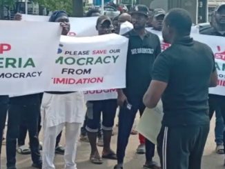 Some members of the People’s Democratic Party (PDP) on Thursday held a peaceful protest at the United States Embassy in Abuja, calling on the international community to help protect Nigeria’s democracy. The protesters submitted letters