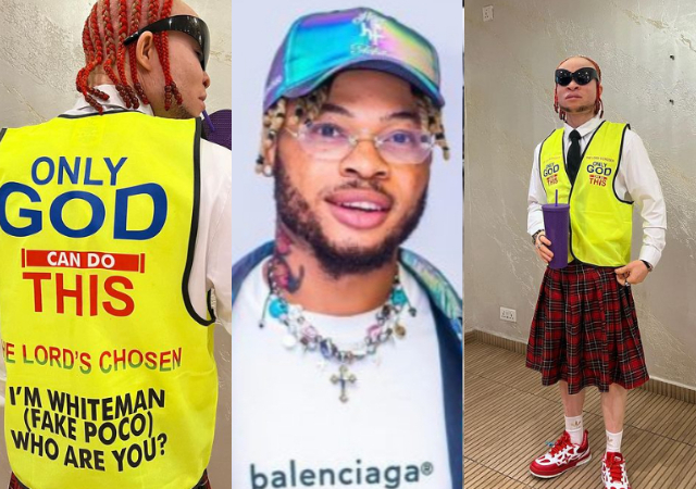 Nigerian social media star and hype man Whiteman, known as Fake Poco, has elevated the Lord’s Chosen trend with his nightclub outfit. Recently, he was seen at a well-known Lagos club wearing the bright neon