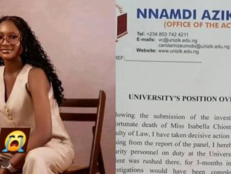 Nnamdi Azikiwe University has spoken up after the tragic d3ath of a 100-level law student, Miss Isabella Chioma Ajana, who passed away on July 9, 2025, days after being rushed to the school’s medical centre.