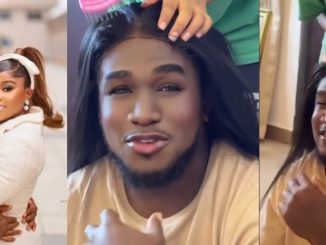 Fashion designer Veekee James added a touch of humor to her husband Femi Atere’s birthday celebration by sharing a hilarious video of him after an unexpected makeover. The now-viral clip shows Femi rocking a wig