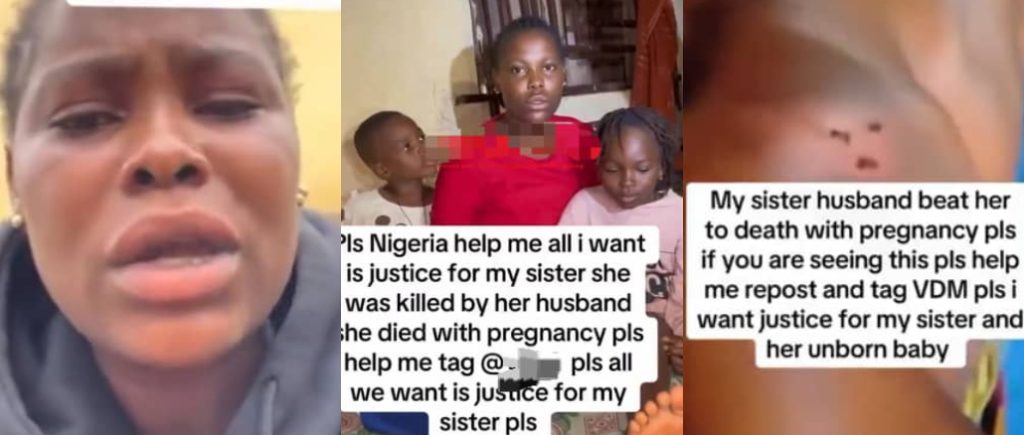 A Nigerian lady has taken to social media to demand justice after her heavily pregnant sister tragically died following a brutal beating by her husband in Benin.