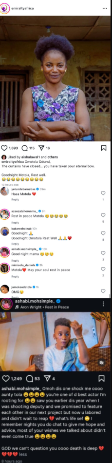 Fans and colleagues have continued to express their shock and sadness across social media, remembering Omotola for her talent, warmth, and contribution to the Yoruba film industry.
