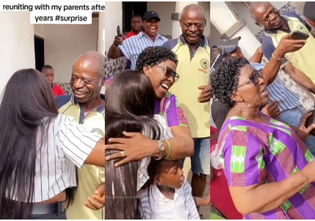 The dramatic scene, recorded on film and published on TikTok by user @funmyte_more, showed the emotional reunion between the returning daughter and her parents, who were fully unaware of her coming.