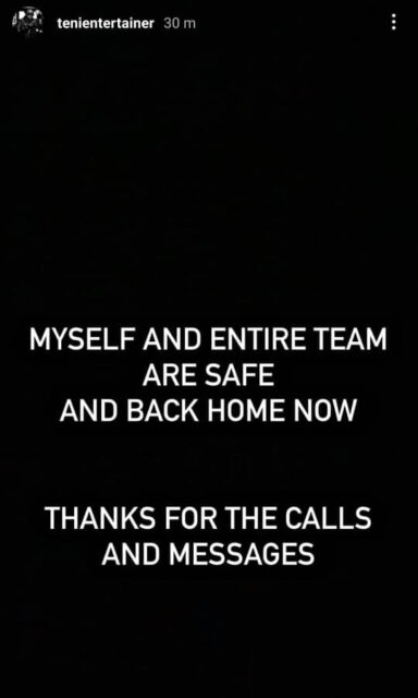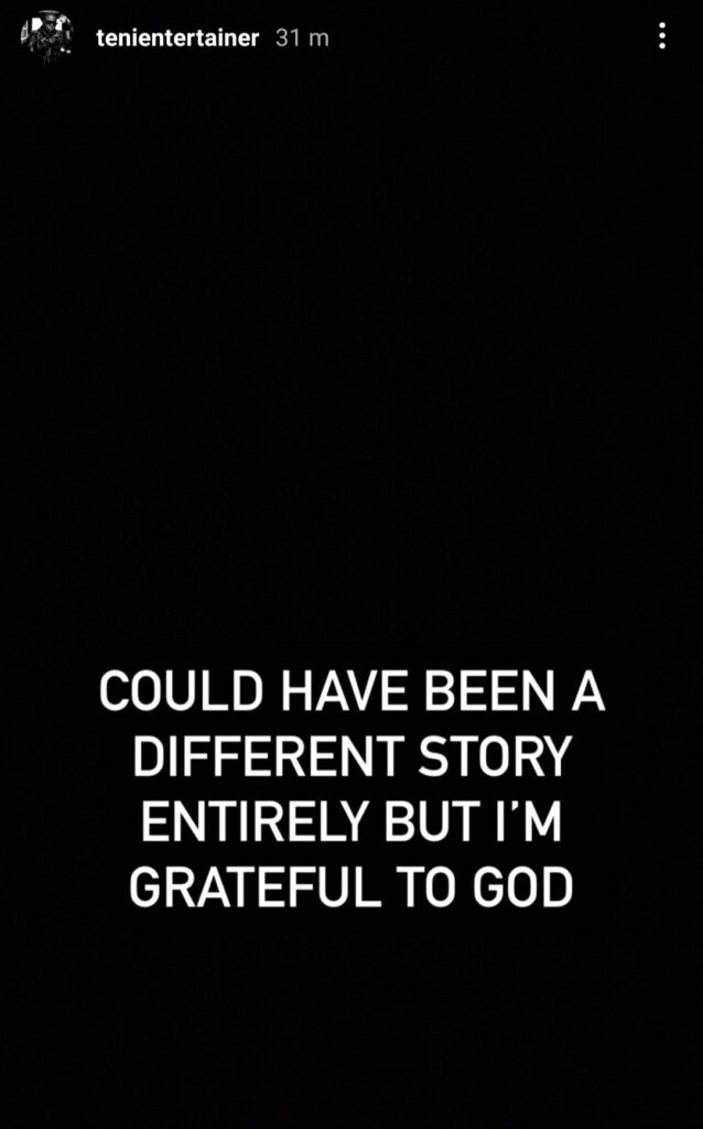 Teni in a post shared on her Instastories this afternoon said it could have been a different story but that she is grateful to God. She also shared a video as she was running to hop on a private jet.