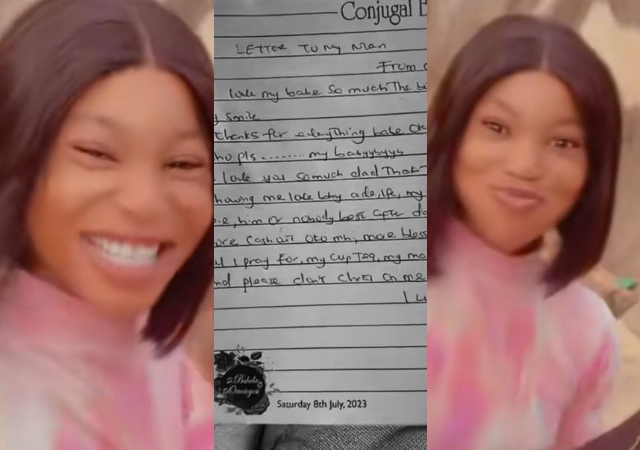 The letter reads: “Letter to my man, from Odunayo. I love my babe so much, the boy behind my smile. Thanks for everything, babe. Okoo dunayo, who pleases? My baby. I love you so much, Dad.”