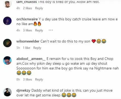 The boy who was still feeling very much sleepy attempted to go back to bed several times but his dad kept drawing him back while reiterating how much he loves him.
