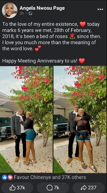 Angela Nwosu, a social media star, recently celebrated six years since meeting her spouse.