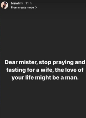 In his post, Bisi opined that the love of the life of some men might just be another man.