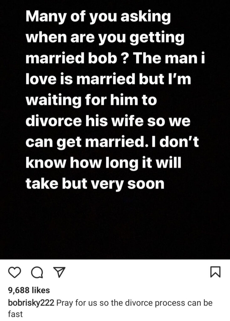 Queen of Nigerian cross dressers, Bobrisky has given his followers an update on his personal life.