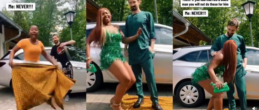 A Nigerian woman is facing criticism for her method of celebrating her Caucasian husband.