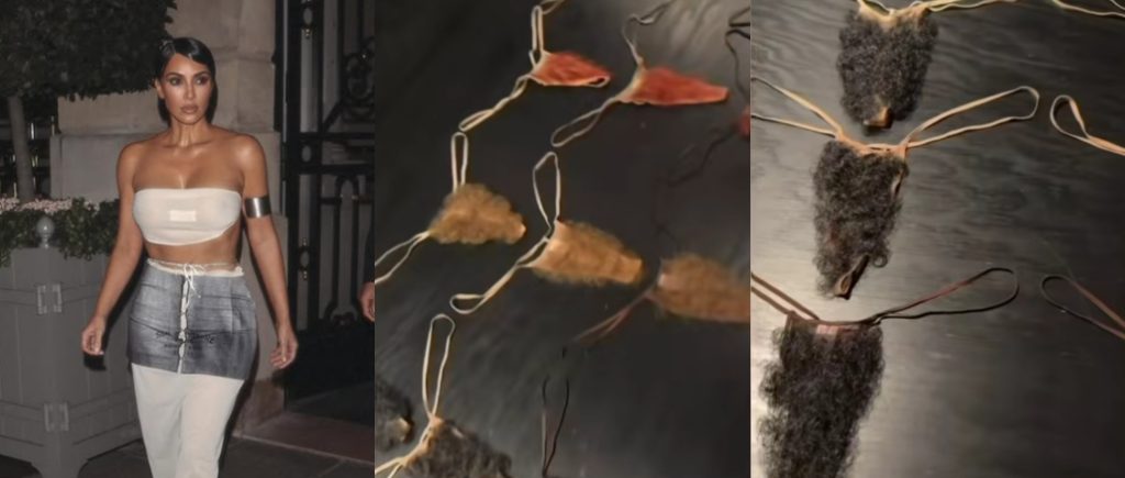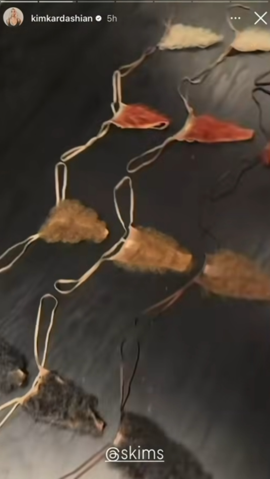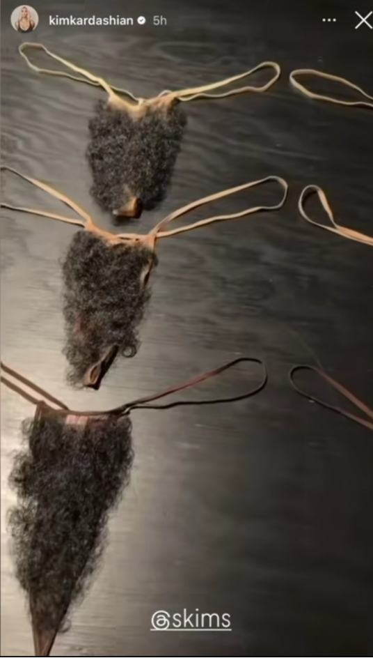 - Kim Kardashian’s brand, SKIMS, has released its most unusual product yet the Faux Hair Micro String Thong, featuring faux curly and straight hair in 12 shades.