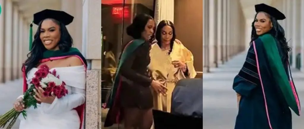 In the video, she honored her cherished mother, thanking her for ensuring she earned her degree.