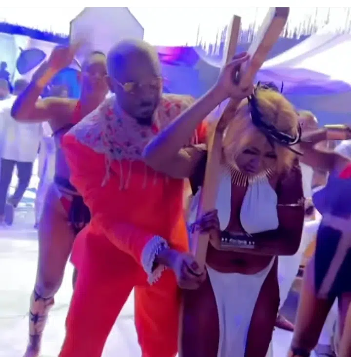 Pretty Mike of Lagos, who is known for his bizarre appearances at big events once again outdid himself with an entourage that depicted Christianity.