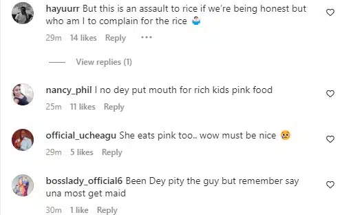 “😂😂😂😂😂😂 This is what the fiancée will be eating o with happiness. If you like, don’t hustle for your children.🤣🤣🤣,” a user wrote.